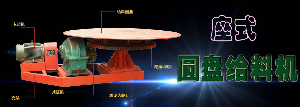 圓盤給料機的電動機通過皮帶的轉動再帶動減速機運行,使得圓盤勻速的繞一側方向旋轉,物料進入圓盤上的襯板之后,就會跟著圓盤一起轉動,旋轉到一定位置,物料就會被襯板上的刮刀刮出去,進入下一道工序,達到給料的目的。